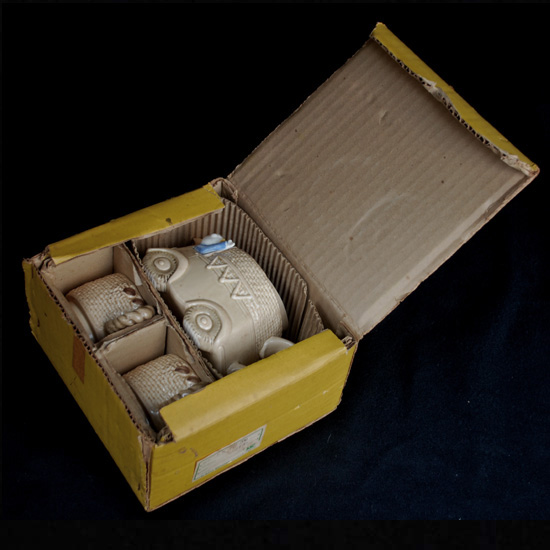 2580 カッコ良くは無い・・・。 1970年代前後 ポット & カップ 2 客 「 HAPPY DRIV-ER SET 」 未使用置き古し品です! 時世を反映しているのだろう。 昨今、何処か明るい前向きのモノと言えば、 薄笑いで 「いいねぇ〜」と、流されるのがオチなのだが・・・、 時世にあやかった クールでスカした前向きチュウのもどうなんだろう? カップの径とポット蓋の径が丁度収まるので、二段重ねの小物入れにも! 日本製 ( KATO KOGEI ) の未使用置き古し品 です。 ◆ サイズ ◆ ( 最大部分 ) ポット / 17 . 5 × 9 . 7 × 12 . 2 cm 程 カップ / 10 . 7 × 7 . 8 × 5 . 8 cm 程 ◆ 状態 ◆ ポット / 一部に保管中の汚れ箇所、カップ蓋ワンコの耳部分に欠けがあります。 カップ / 特に問題ありません。 \ 1400 送料-y60 ![]() ![]() ![]() ![]() ![]() ![]() ![]() ![]() ![]() |